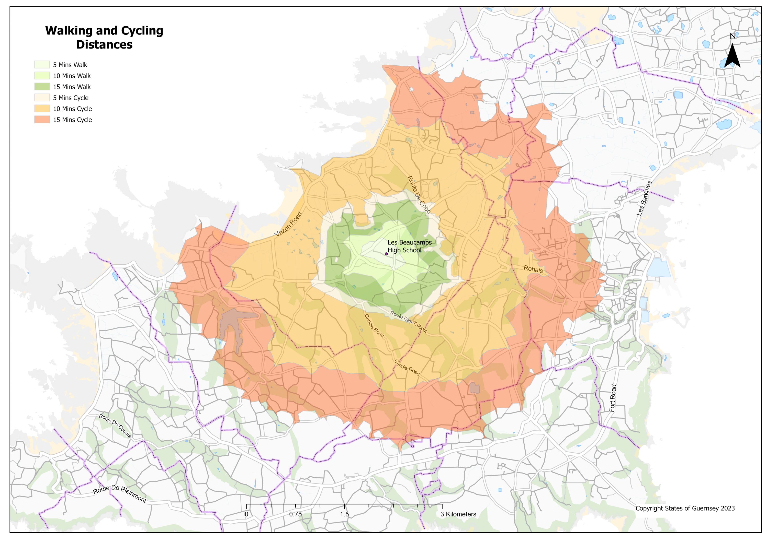 Below is a link to an image of an active travel map, highlighting walking and cycling distances around the school. Click on the map to open a larger view, locate your home and work out how long it could take you to get to school using active travel, it might be quicker than you think!