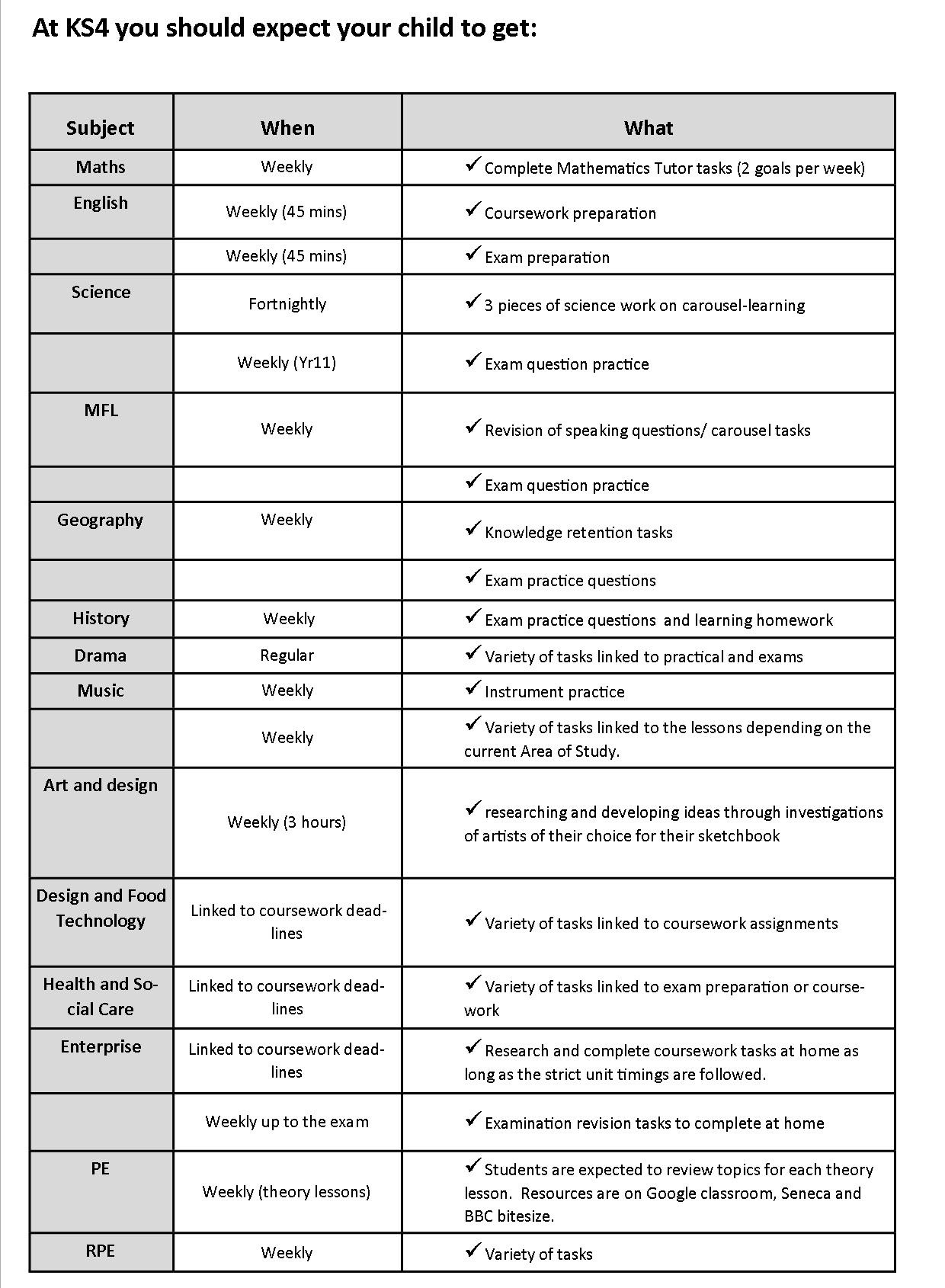 KS4 Homework Expectations