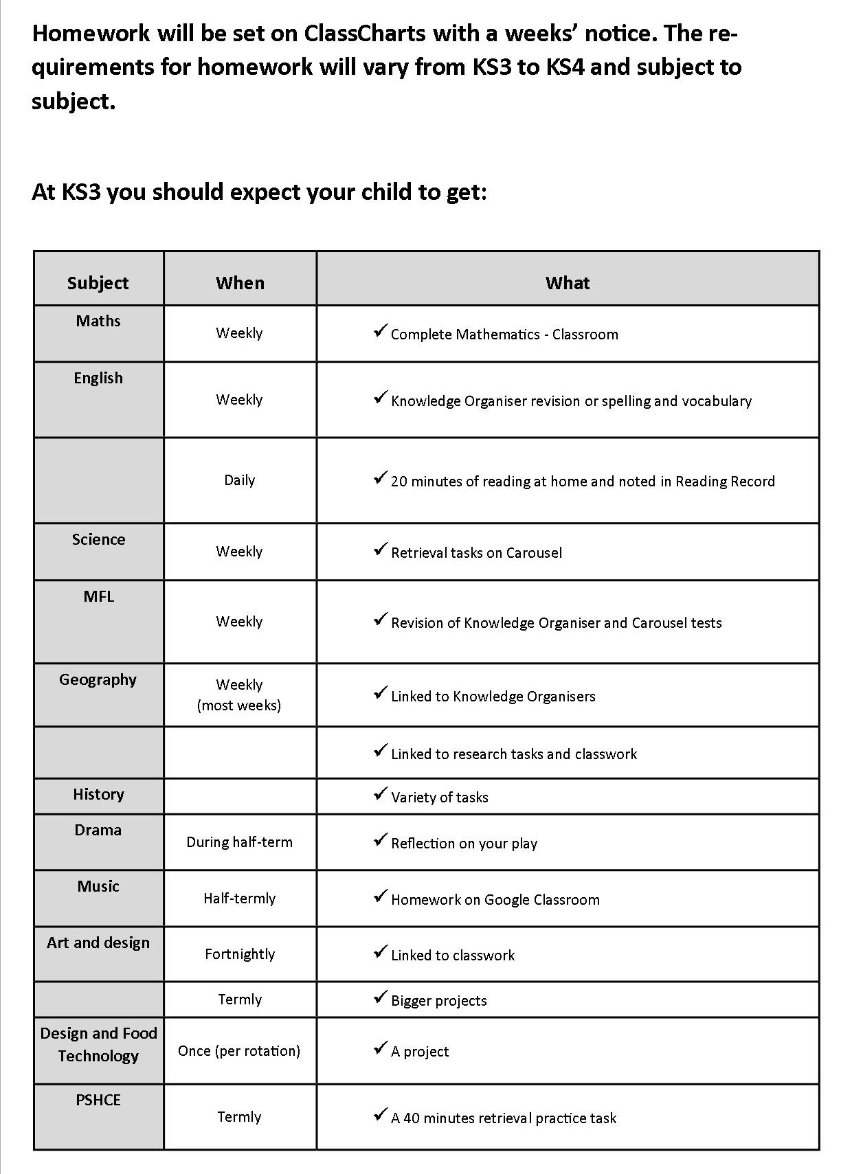 KS3 Homework Expectations